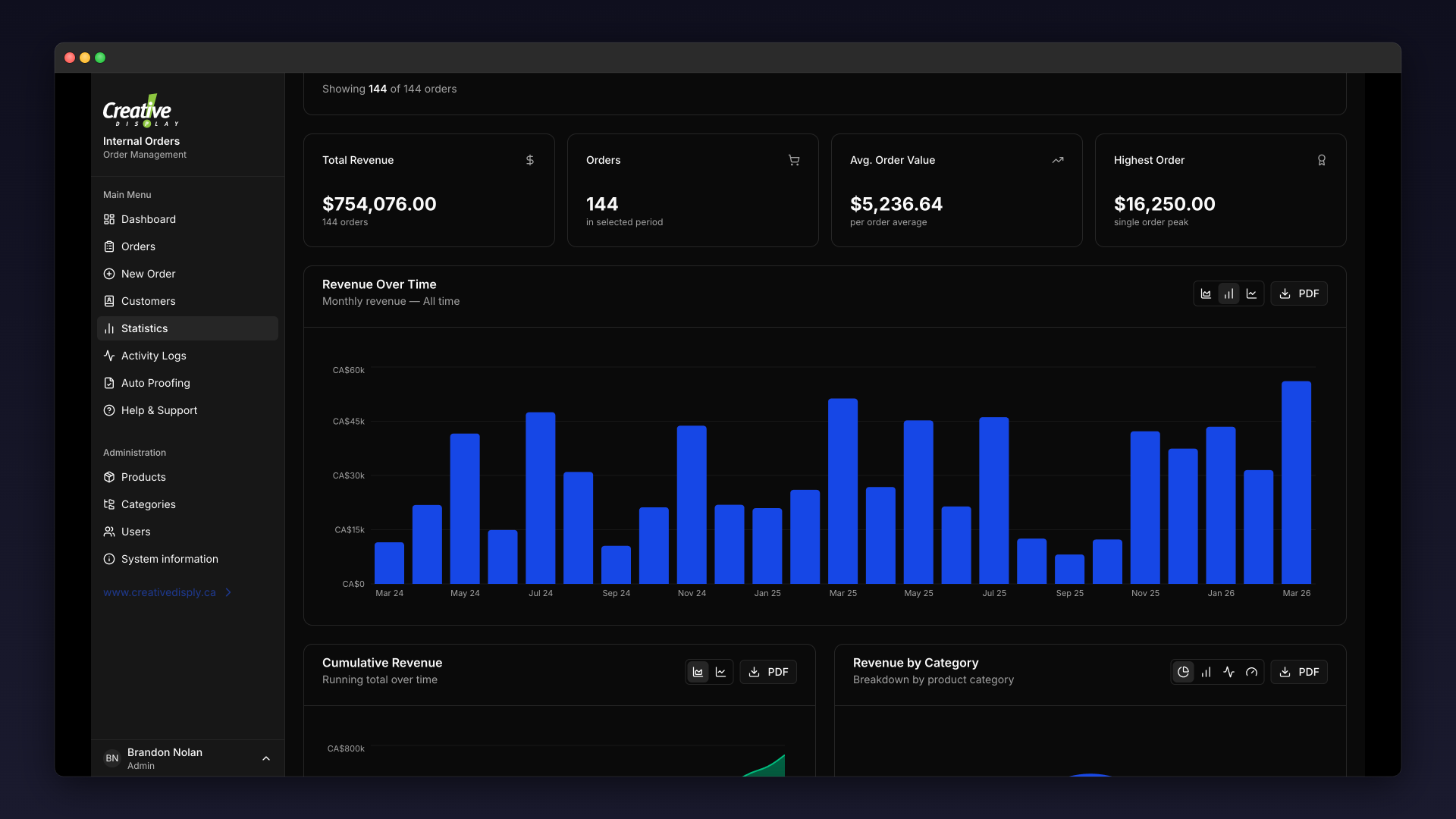 CDSoftware demonstrates what a focused, well-architected internal tool can look like when built with modern full-stack technologies. It solves a genuine business problem — the operational complexity of managing customer orders across a distributed sales team — and does so with a clean, role-aware interface backed by a robust, type-safe architecture. From audit logging and image proofing to Excel exports and onboarding flows, every feature was driven by a real workflow need. CDSoftware is a platform built not for show, but for daily use — and that distinction shapes every design and engineering decision within it.